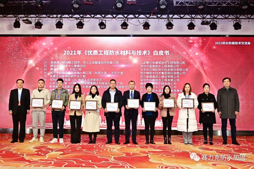 昨日,備受行業關注的由中國建築業協會(huì)建築防水(shuǐ)分會(huì)主辦的2021全國防水(shuǐ)防腐技術交流盛會(huì)在成都市順利開(kāi)幕。會(huì)上(shàng)重磅發布了(le)《2021優質工(gōng)程防水(shuǐ)材料與技術白(bái)皮書》。賽力克公司參建的港珠澳大(dà)橋島隧工(gōng)程東、西人工(gōng)島隧道(dào)防水(shuǐ)防腐工(gōng)程榮譽入編。